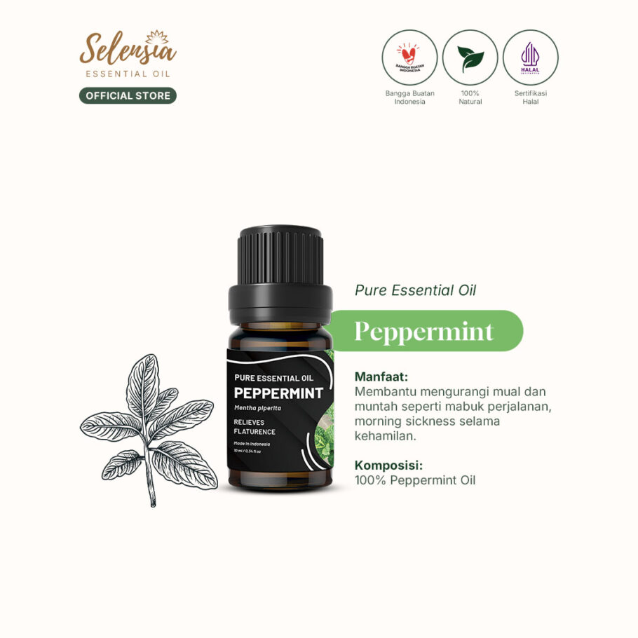 Aroma Peppermint Essential Oil mampu membantu melegakan pernafasan dan membantu meredakan masalah pencernaan seperti perut kembung dan mual muntah.