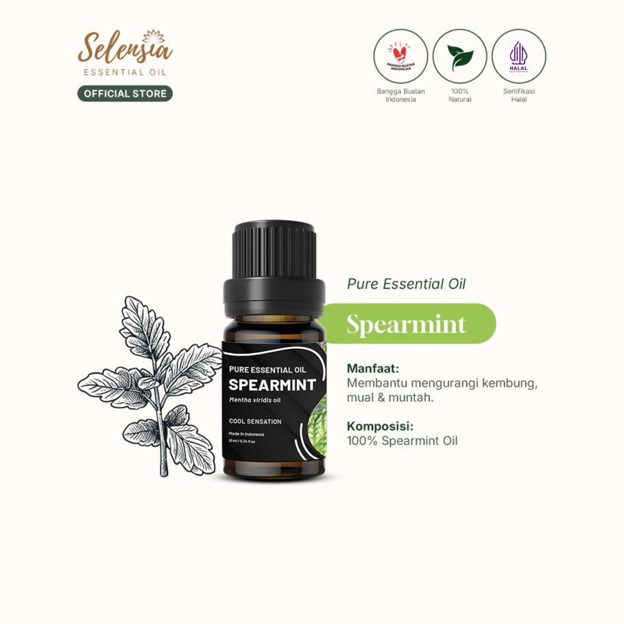 Aroma Spearmint Essential Oil dapat membantu mengurangi stress & kecemasan (anxiety). Mengurangi hidung tersumbat, gatal, nyeri haid, mual & kembung. Bertindak sebagai antiseptik, minyak ini memiliki sifat antibakteri & antivirus. Mengurangi radang sendi, nyeri otot, & kram.